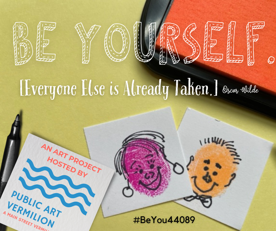 “Be Yourself [Everyone Else is Already Taken]” was a community public art project inspired by a quote from playwright, Oscar Wilde, the project kicked off in April 2023 inviting everyone to create a simple, quick and fun thumbprint drawing of themselves. In five months, more than 600 drawings had been collected with no two being the same because, after all, they began with a unique thumbprint. The project was a great reminder that everyone is different and it’s good to be yourself.”
